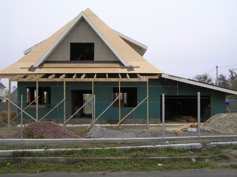 AlexIT Опубліковано: 6 березня 2012 Автор Поділитись Опубліковано: 6 березня 2012 "В процессе" возникла идея сделать веранды поболее - почти на всю ширину фасадов и поширше - 2,3 м. Потом пошла зашивка изоплатом кровельным и стеновым, навешивание вентилируемого фасада наверху, чтобы не особо лазить потом по битумке, и, собственно, крыша - бруски по стропилам, поперечные через 50 см и ОСБ (как раз там она - самое оно). Параллельно залился фундамент забора (предаврительно выгребли все, что нахренячила первая бригада). Посилання на коментар Поділитися на інших сайтах More sharing options...