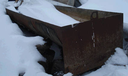 Труба 820-я разрезанная пополам и к торцам приварены квадраты с ушами для крана, длина 2,5 м, толщина стенки 10мм.