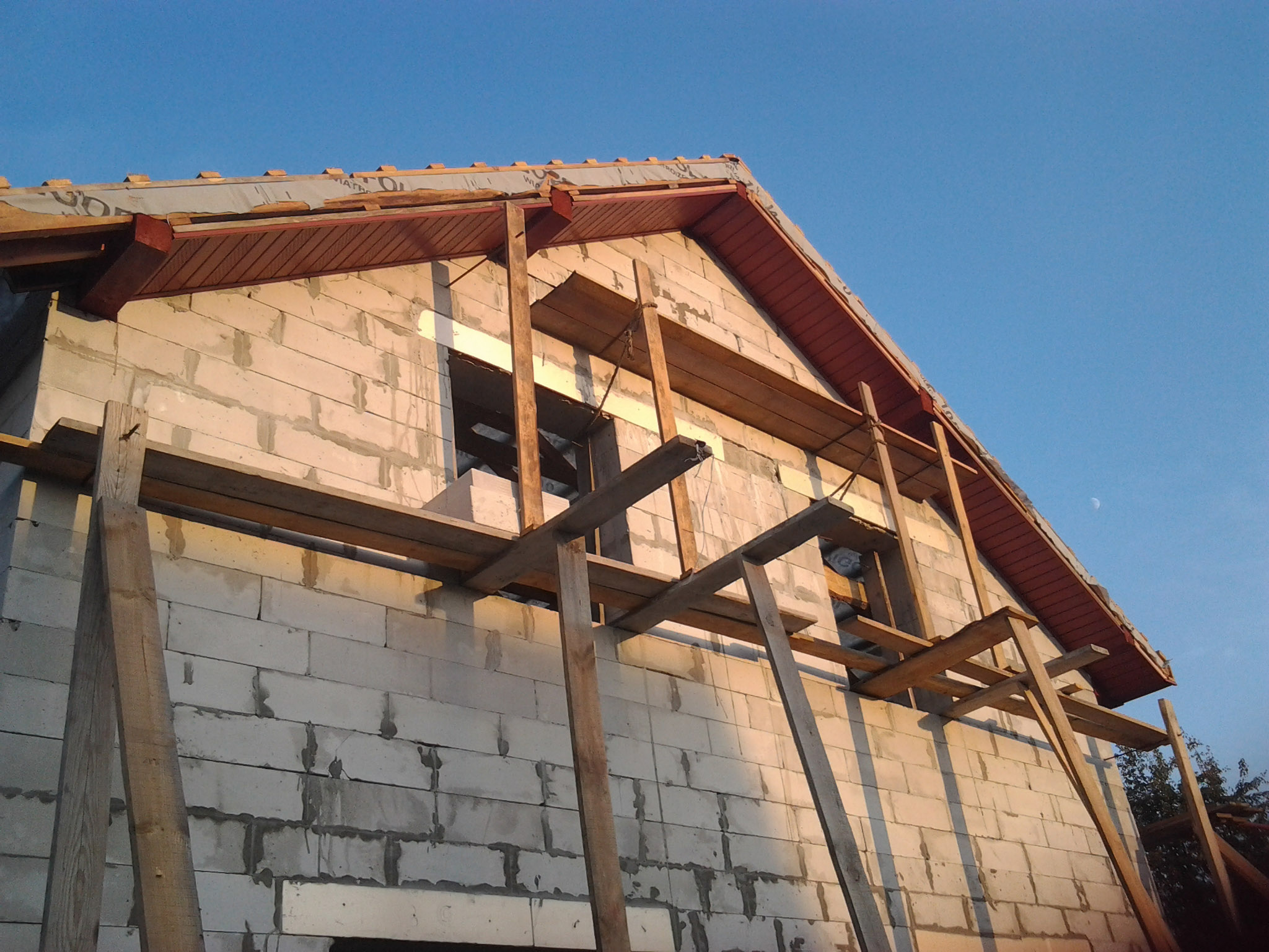 mebli-land Опубліковано: 9 липня 2013 Автор Поділитись Опубліковано: 9 липня 2013 С дымоходом закончили и принялись за подшивку. Так как ребята тогда срез стропил сделали не совсем по моему, то пришлось монтировать дополнительные бруски для создания необходимой конструкции. Так же сегодня заказал софиты BRYZA в цвет металлочерепицы и крючки для водосточки. Посилання на коментар Поділитися на інших сайтах More sharing options...