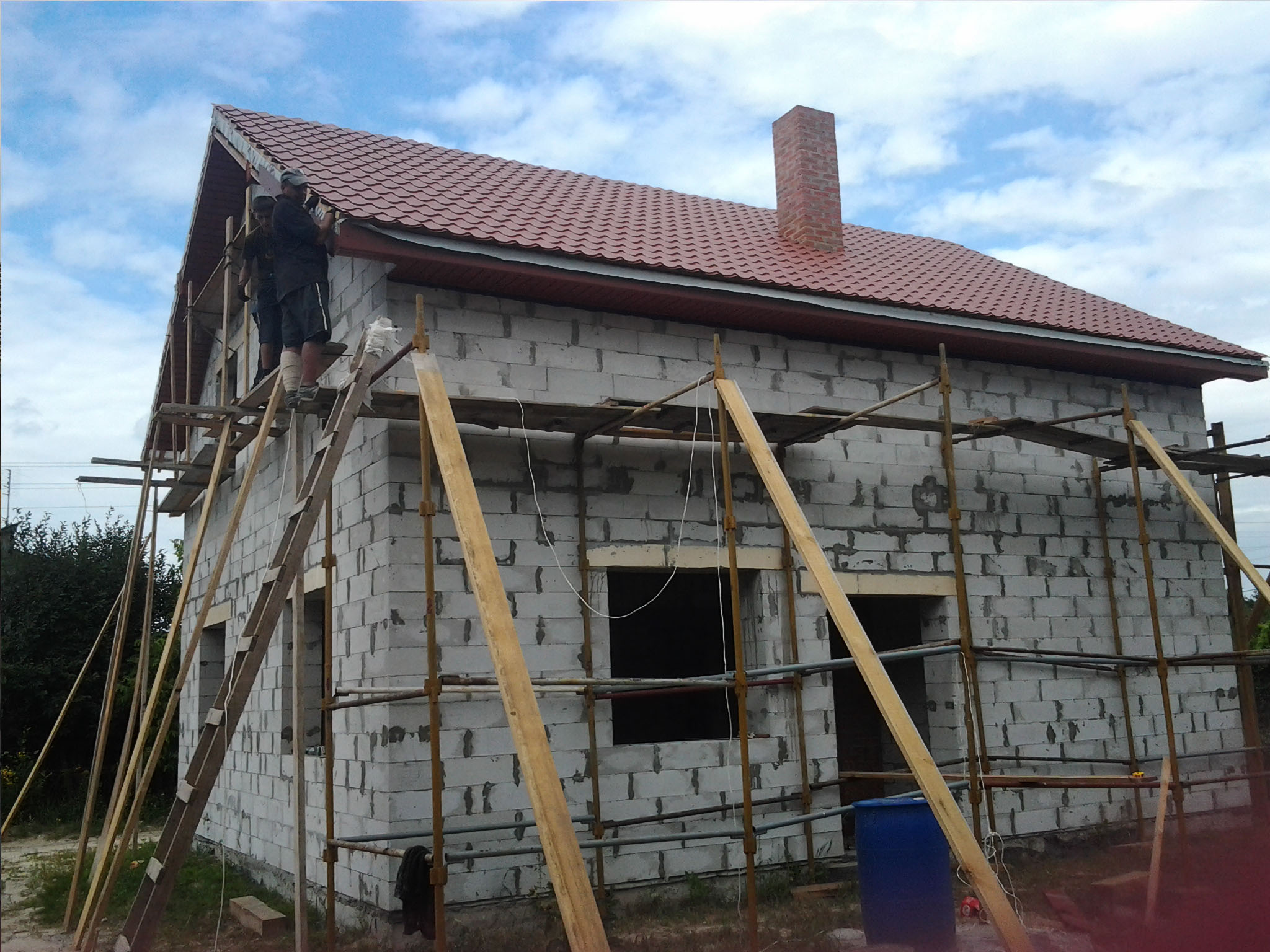 mebli-land Опубліковано: 6 липня 2013 Автор Поділитись Опубліковано: 6 липня 2013 Лед тронулся... Вчера приехали мои трудяги и сразу принялись за роботу. Сегодня к обеду дымоход вырос до начала 2-го этажа.Ревизию не сфоткал но она есть со стороны дверного проема. Так же были завезены леса и со следующей недели приступаем к свесам, и не посредственно к самой крыше. По моей просьбе было запроектировано отверстие для металлопластиковой трубы под конденсат, которая пойдет в канализацию. После выхода из дымохода я трубу заложу в рукав, для того чтобы в случае чего можно было заменить ее. Посилання на коментар Поділитися на інших сайтах More sharing options...