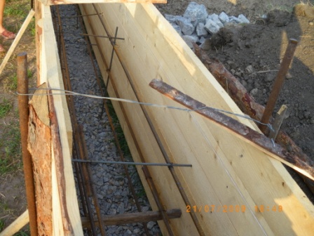 ugin78 Опубліковано: 19 червня 2012 Автор Поділитись Опубліковано: 19 червня 2012 дом решили с женой делать одноэтажный, причины - 1) участок 24 сотки - 24 х 100 метров (места достаточно) 2) при той же квадратуре, у дома меньшая квадратура холодных стен (наружных) 3) когда мне будет за 60 - лестницу я прокляну однозначно, а спать на коврике в прихожей меня непрельщает. К томуже со второго этажа тяжело гроб с телом выносить. имеется три раздельных спальни, общий зал и кухня, спальни большие - у каждого должна быть своя територия. В зале планируем диван, телевизор, столик. Крышу я хотел делать плоской ( моя мечта ). но сильно встали на рога родители и жена. К томуже я не нашёл ( на тот момент) хорошего плана перекрытия, по которому можно ходить (без использования ж-б плит перекрытия (боюсь когда над головой сильно тяжело) В общем все, дальше смотрите фотки и сам процес работы Предупреждаю сразу - у меня долгострой, и делаем мы почти всё своими руками (нэту дэнэг скока хочу) Добавлено через 30 минут долго борол свою жадность, незнаю прав или нет до сих пор. Фундаменты у нас принято делать из камня, потом сверху 15-25см делают бетонный пояс с арматурой, и то не все. я решил делать его монолитным и армированым (что бы внуки деда вспоминали добрым словом, может быть). Копают у нас до "цілника" - тоесть копают чернозём до самого лёса (жёлтой глины). по дну решил вывести уровень (ноль), так как раз в 4-5 лет сильные дожди весной и летом - грунтовые воды поднимаються до уровня 1,7 метра. Глубина вышла с одной стороны 1,4 метра с другой 1,1 метра - наклон 30 см по участку на длину дома. Ширина 50 см, так как уже не было бы возможности копать. По дну залил подошву (на всякий случай) 15 см толшина плюс два прута арматуры по периметру (арматура восьмёрка). Потом засыпал щебнем (20-40 фракция) в перемешку с отсевом. Технология такая - 30 см щебня, 30 см отсева. потом ломом перемешал всё. До верха недосыпал приблизительно см 15. Дальше поставил опалубку на фундамент - периметр и капиталка. арматура 14 или 16 (точно непомню, уточню позже) в три ряда по две штуки, и сделал выводы арматурой на перестенки. Купил 20 кубов бетона (4 миксера), плюс 6 кубов "ручного камня" небольшого, (по расчётам объем фундамента составлял 24 куба. Но влезло все 26 - осталось пару камушков))). В нескольких местах опалубка разошлась (плохой крепёж, когда заливали - чуть кондратий не хватил), плюс наверное обманули на объёмах камня или бетона. Вобщем ширина фундамента - 50 см (а хватило бы и 40 см), высота от 60 см до 94см. плюс 15 см в землю (писал выше что щебня недосыпал до верху). через три дня снял опалубку и неделю поливал 2-3 раза в день, так как был август и жара. через 30 дней начали делать стены. но об этом потом. а щас фотки Марку бетона укажу позже. Помню что когда покупал врал что дом двухэтажный, думаю если обманут с цементом, то на один этаж точно останется и щебень - 10-20 (потому что добавлял камень в заливку) Посилання на коментар Поділитися на інших сайтах More sharing options...