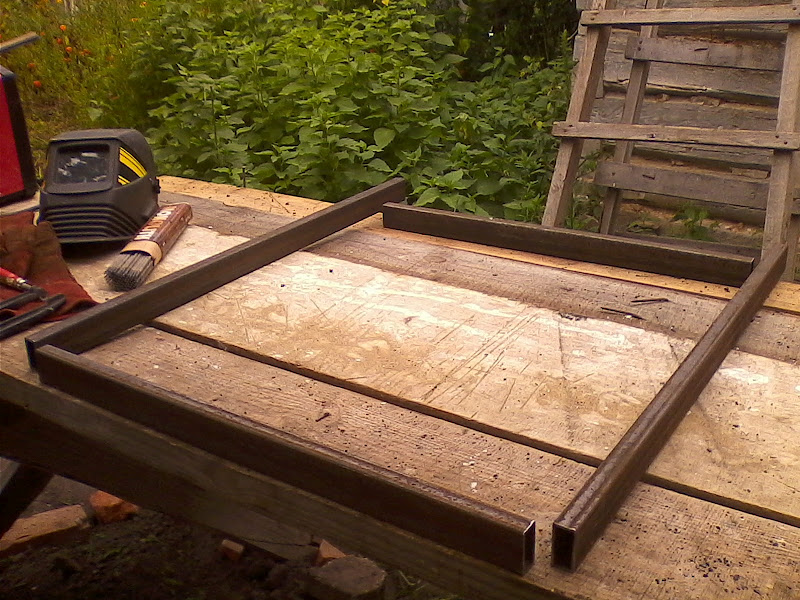 aver Опубліковано: 23 липня 2012 Поділитись Опубліковано: 23 липня 2012 Имеются балконы вот такого плана (фото 1): Последовательность действий: из прямоугольной профильной трубы варим рамку по размеру проёма, затем ввариваем стойки, красим, примеряем к проёму, намечаем дырки для болтов на боковинках рамки и на стенах, в стену - дюбель, рамку - к стене болтами через просверленные отверстия. Материалы: труба профильная 50х25х2, готовые кованые стойки 95см, отрезные и зачистной круги для болгарки, электроды 3мм, грунтовка, краска, дюбеля и болты. Инструменты: болгарка, рулетка, карандаш, молоток, угловая струбцина 90°, сварочный аппарат. Для удобной работы соорудил временный верстак-стол 2.5х1м. 1. Подготавливаем отрезки трубы для проёма (фото 2) 2. С помощью угловой струбцины фиксируем два отрезка трубы (фото 3, фото 4) 3. Варим (фото 5). Внутренние углы я не варил. 4. Повторяем пп.2,3 с остальными углами. Рамка готова (фото 6) 5. Ввариваем кованые стойки. Для этого предварительно отмечаем на верхней и нижней трубе рамки места крепления стоек. Вобщем, калькулятор и математика помогут (фото 7, фото 8) 6. Ограждение почти готово. Вот как приблизительно будет выглядеть после монтажа - фото 9. Только от пола ещё будет отступ 10-12см. 7. До покраски и монтажа пока не дошёл Поэтому - далі буде... п.с. замечу, что я не сварщик и не строитель. по роду занятий - IT специалист. 4 Посилання на коментар Поділитися на інших сайтах More sharing options...